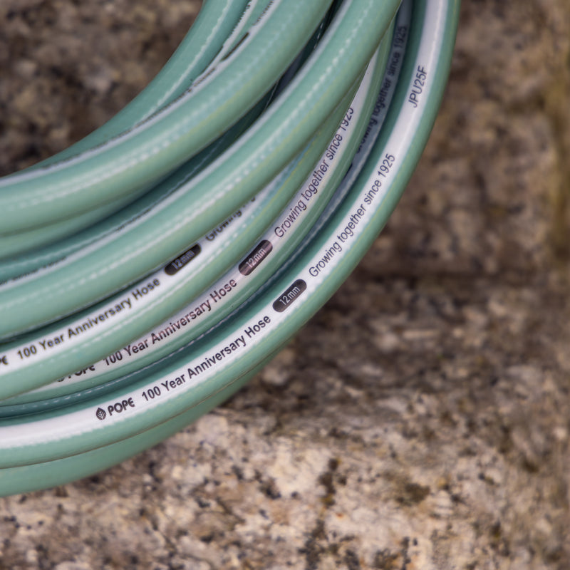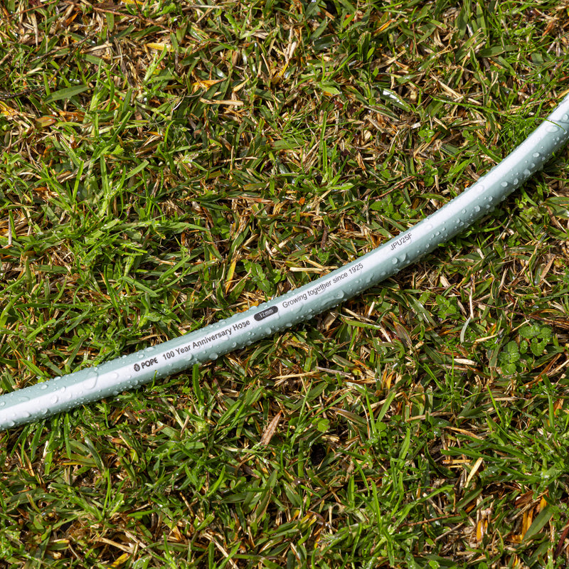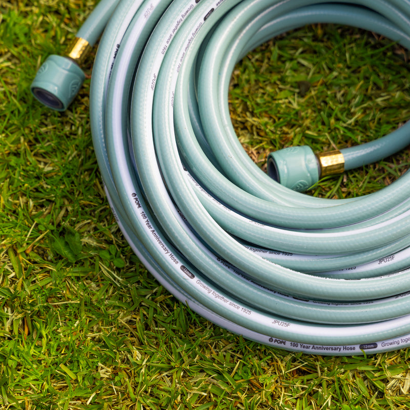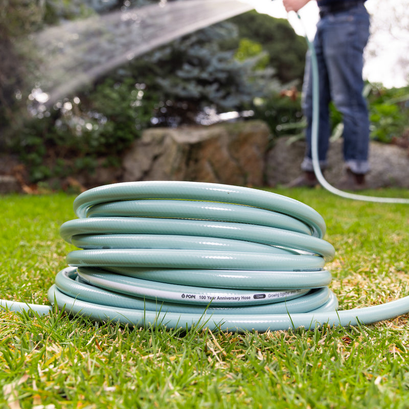 This Limited-Edition Pope 100 Year 12mm x 20m Anniversary Garden Hose is a medium duty reinforced braided garden hose that is supplied Tap Ready®. Featuring 12mm hose connectors with Pope’s unique Perma Fit® super strong connections to ensure secure and leak free watering.