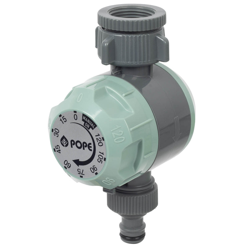 This Limited-Edition Pope 100 Year 2 Hour Tap Timer takes the worry out of watering. Simply push in the button under the dial while turning the dial to your selected watering time. Select watering time in 5 minute increments up to 2 hours, then the tap timer will shut off automatically when the set time has expired. The universal swivel tap nut can be fitted to either a 20mm or 25mm BSP tap.