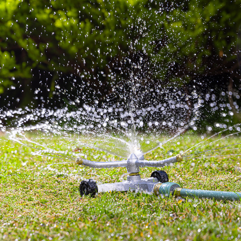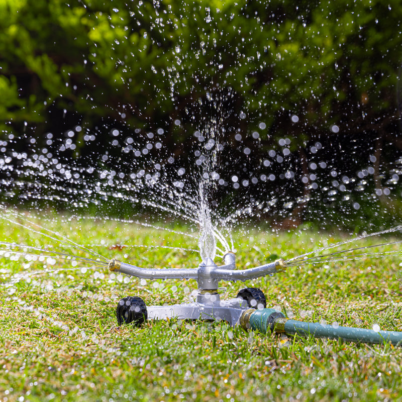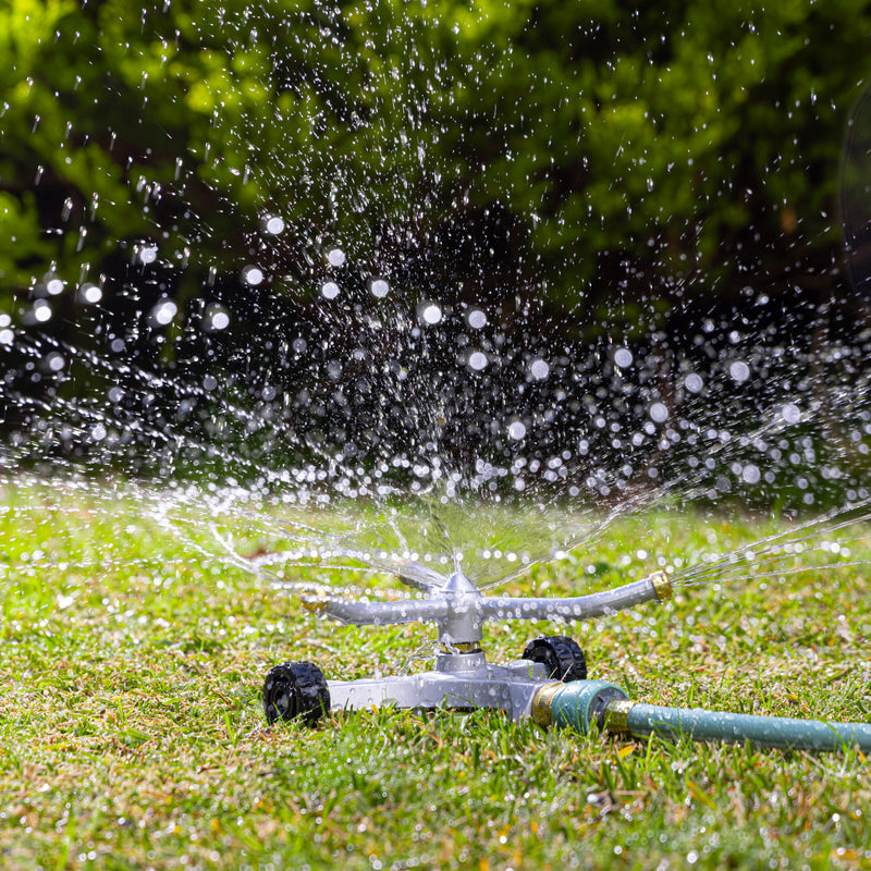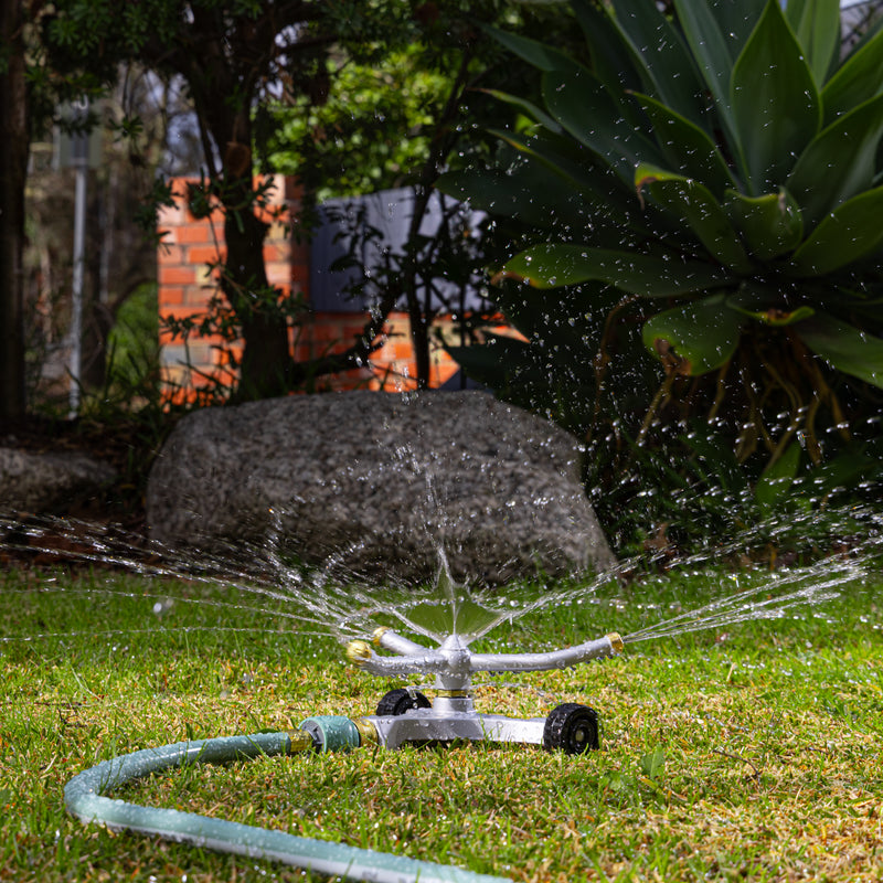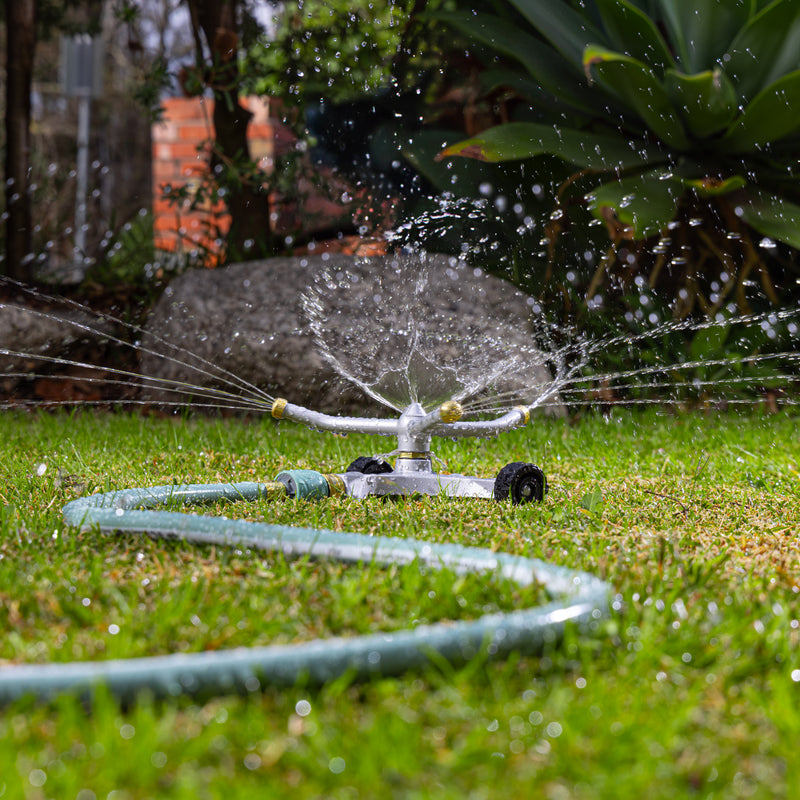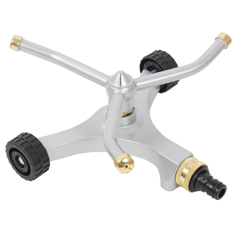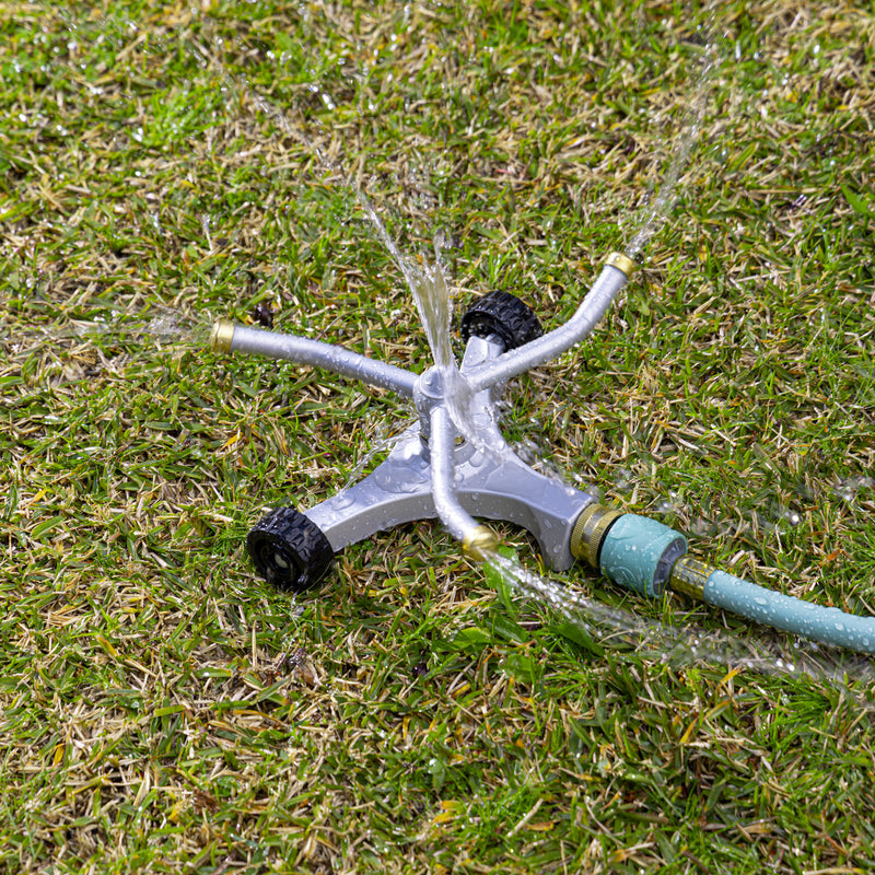 This Limited-Edition Pope 100 Year 3 Arm Sprinkler on Wheels features brass tips for a fine, even spray. The wheel base makes repositioning around the lawn a breeze, while the 12mm hose connection ensures a quick setup.
