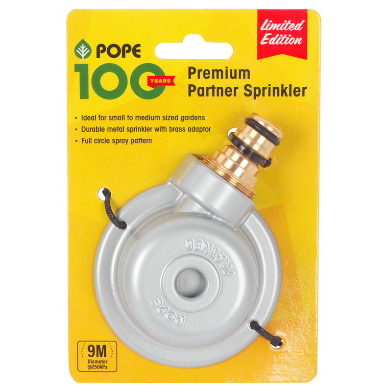 A true classic in garden care, the Limited-Edition 100 Year Premium Partner Sprinkler is Pope’s original design that set the benchmark for reliable, efficient watering. Known for its durable construction and even water distribution, this iconic sprinkler has been a trusted choice for generations of gardeners. Designed with simplicity and performance in mind, the Partner remains a testament to Pope’s legacy of innovation in outdoor watering solutions.