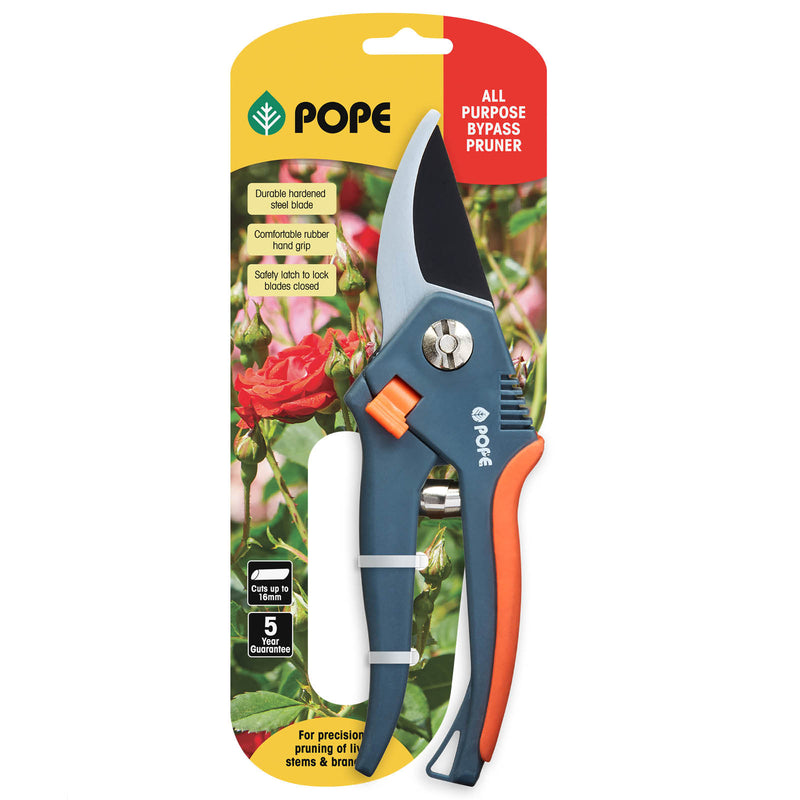 The Pope All Purpose Bypass Pruner feature comfortable rubber hand grips and is ideal for precision pruning of live stems and branches.