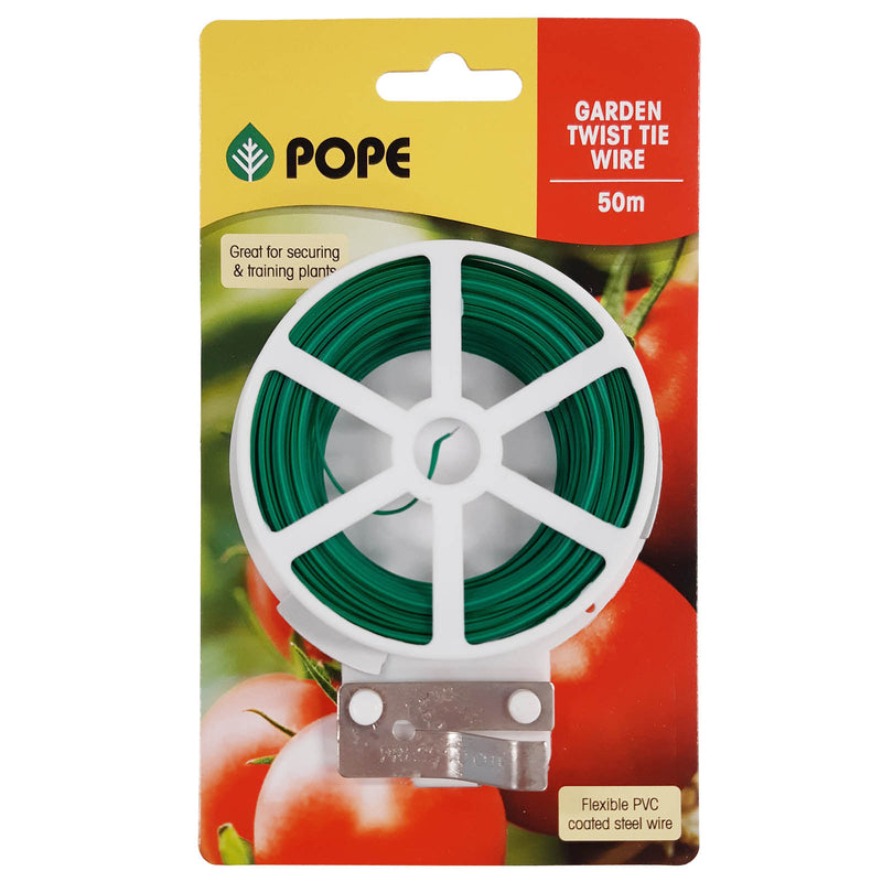 The Pope Garden Twist Tie Wire includes 50 metres of flexible PVC coated steel wire and features a handy dispenser with in-built cutting blade. Ideal for securing and training plants such as tomotes, capsicums, chillis and passionfruit.