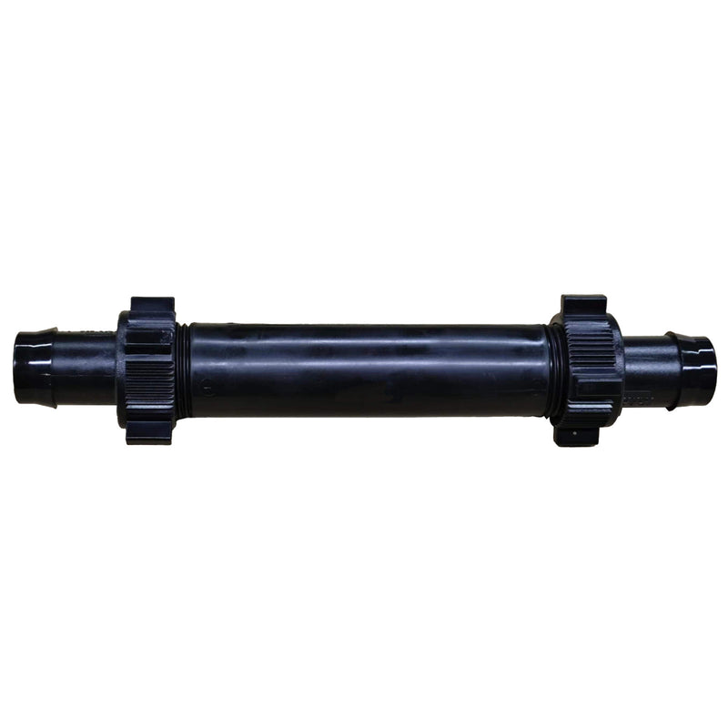 The Pope 25mm Barbed In-Line Filter helps protect your irrigation system by preventing dirt and grit from entering and clogging drippers or sprays. Designed for use with 25mm poly pipe, it can be installed anywhere along the line - ideally before an emitter - and should be cleaned regularly for optimal performance. Secure the connection with a locking clamp for a watertight seal.