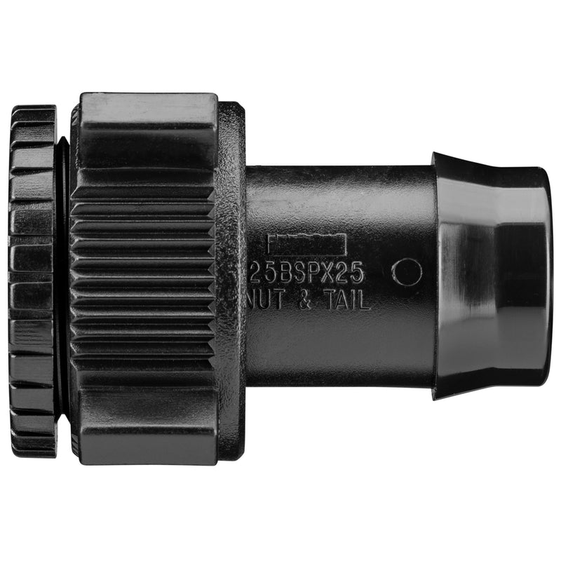 | Short Description | Connect 25mm poly pipe to a garden tap with this universal nut and tail. |