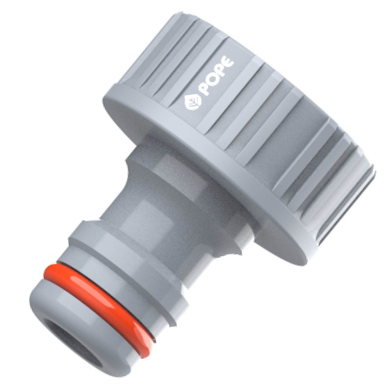 The Pope 12mm x 20mm BSP Tap Adaptor can be used to securely connect your 12mm garden hose to a tap for leak-free watering. Used to connect to a 20mm (¾”) BSP tap to 12mm snap on fittings.