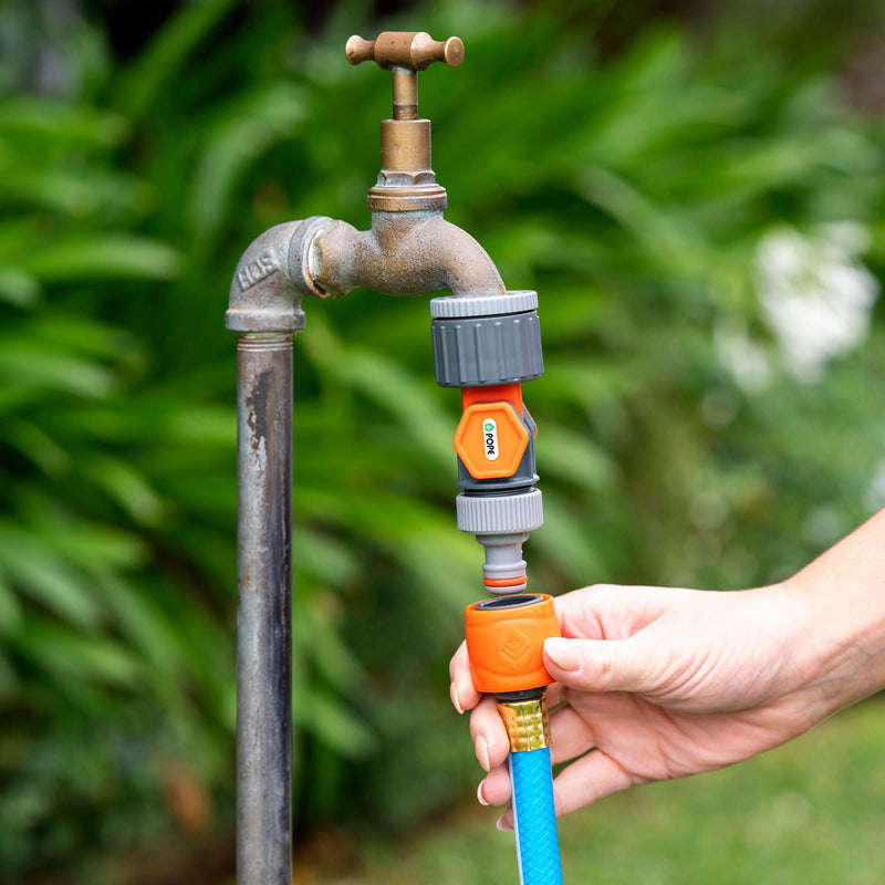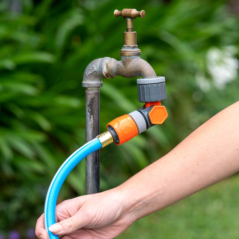 - Connects tap to 12mm garden hose with 360 degree rotation and 180 degree swivel to prevent hose twisting