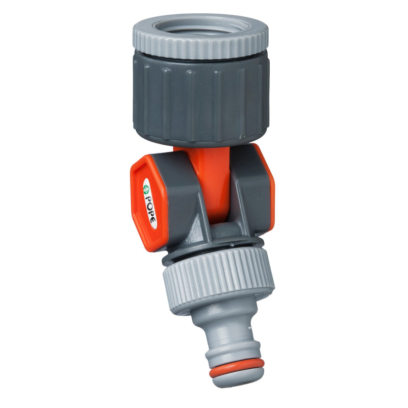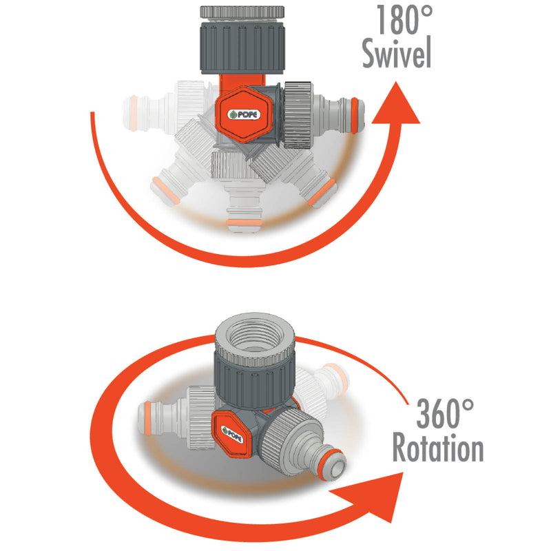The Pope 12mm Swivel Universal Tap Adaptor can be used to securely connect your 12mm garden hose to a tap for leak-free watering. The 360 degree rotation and 180 degree swivel allow you to move around the garden without having to deal with a kinked hose. It can be used to connect to either a 20mm (¾”) or 25mm (1”) BSP tap to 12mm snap on fittings.