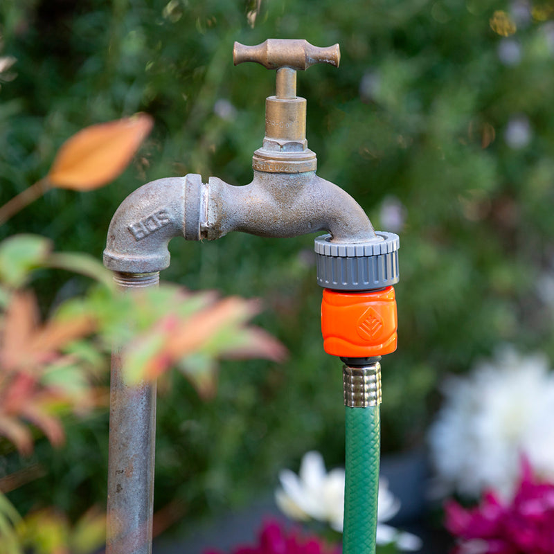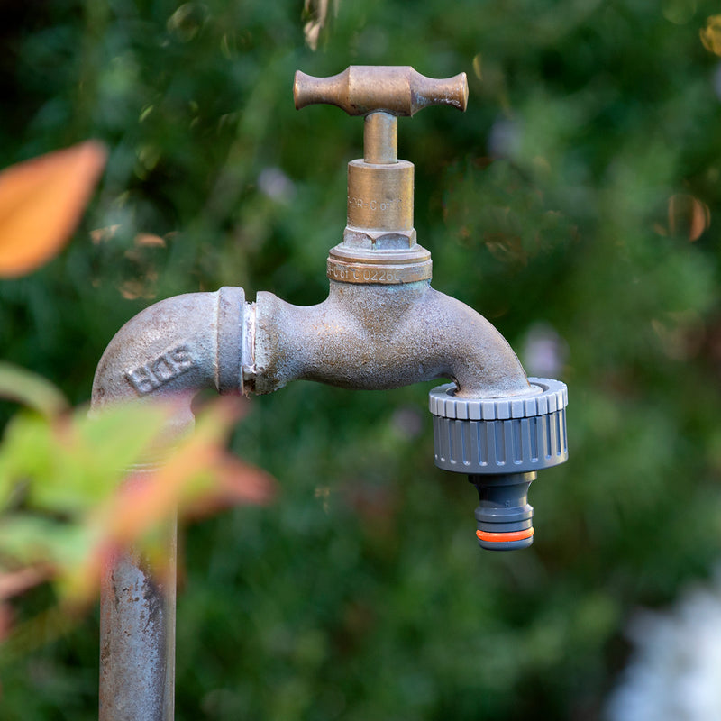 The Pope Universal Tap Adaptor can be used to securely connect your 12mm garden hose to a tap for leak-free watering. It can be used to connect to either a 20mm (¾”) or 25mm (1”) BSP tap to 12mm snap on fittings.