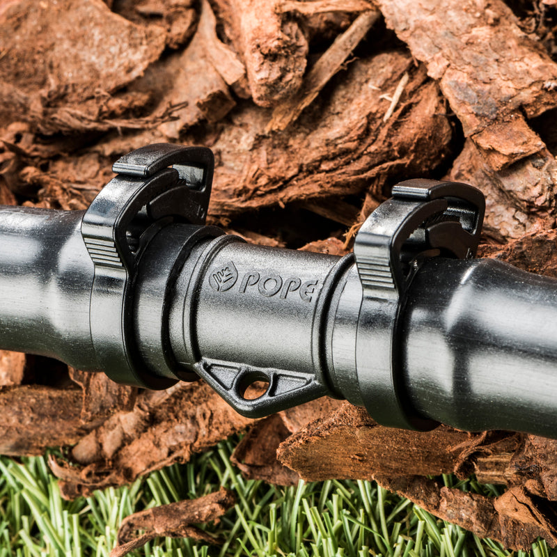 The Pope 19mm Barbed Joiner can be used to join or repair 19mm poly pipe in an irrigation system. Secure the joiner to the pipe with either a locking clamp or Loc-Sure® clamp.