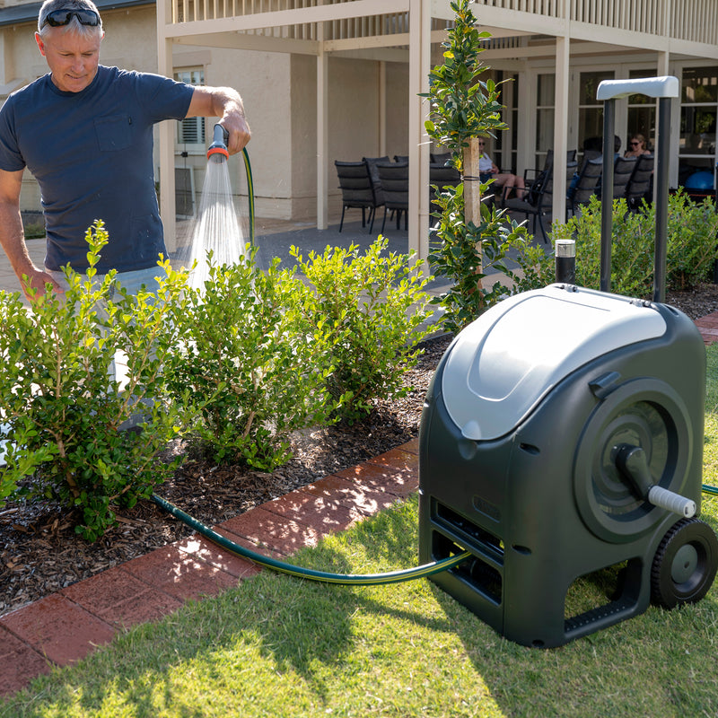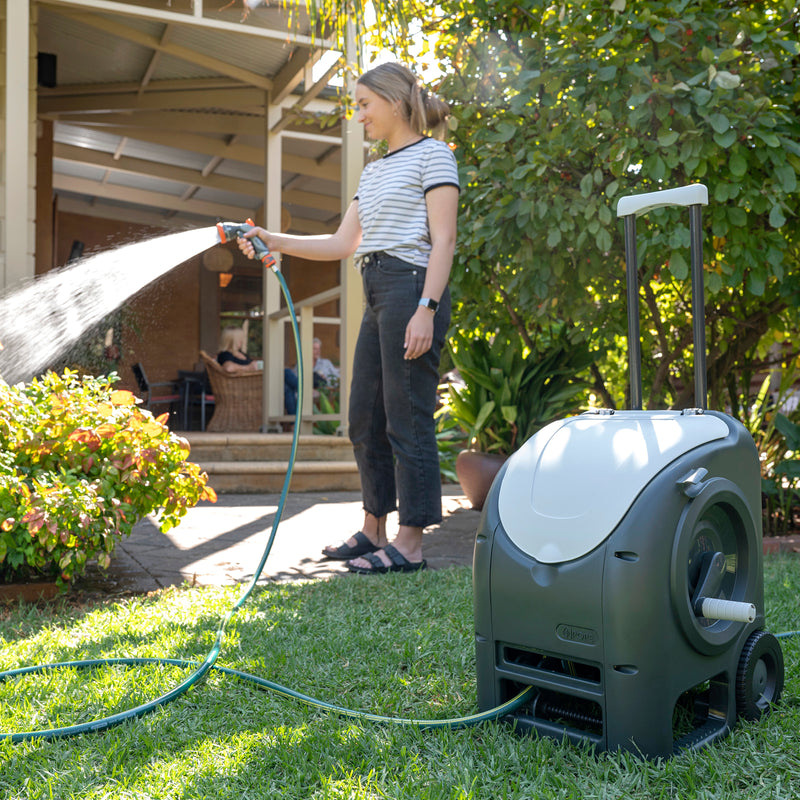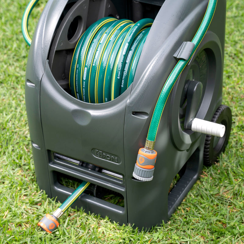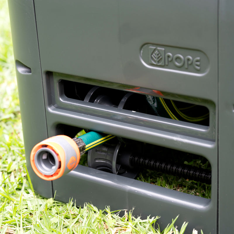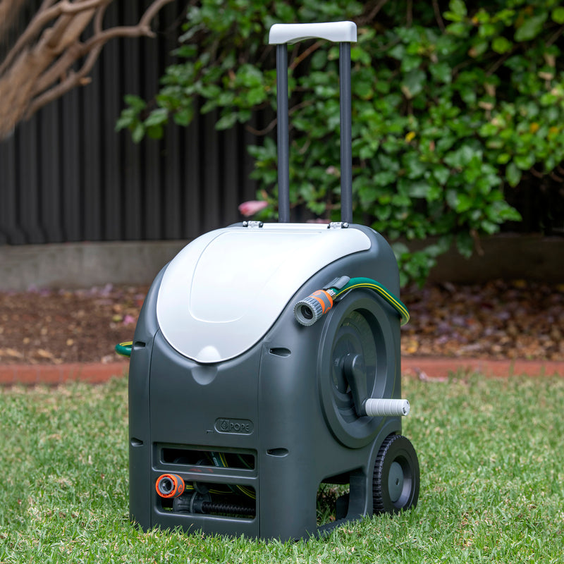 The Pope Cart Away is a stylish solution for medium to large gardens. It comes ready to use out of the box with 20m of 12mm medium duty garden hose and a 1.2m tap to reel hose featuring Pope’s unique Perma Fit® connections.