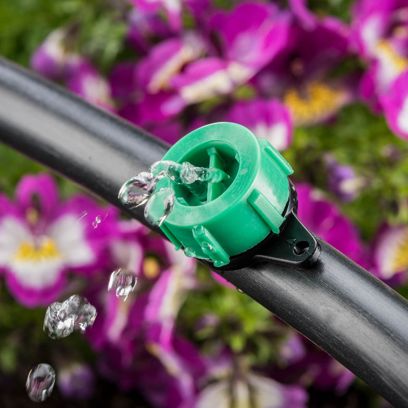 The Pope Variable Flow Dripper is ideal for garden beds, shrubs and trees. Adjust flow rate to meet individual plant's needs by turning the cap. Insert into 13mm or 19mm polytube for rows of drippers or connect to 4mm flexible tube to place drippers at plant root zone.