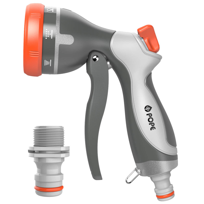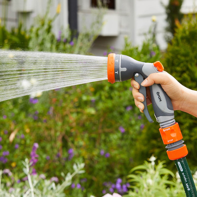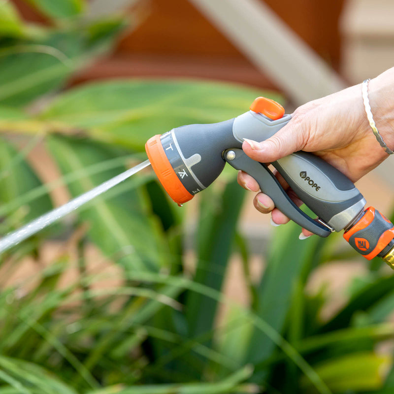 The Pope Deluxe Hand Spray is the perfect companion for watering your garden. It has 7 watering patterns to suit your various needs. Simply rotate the spray head for shower, mist, hard jet, soft jet, cone, centre or flat pattern.