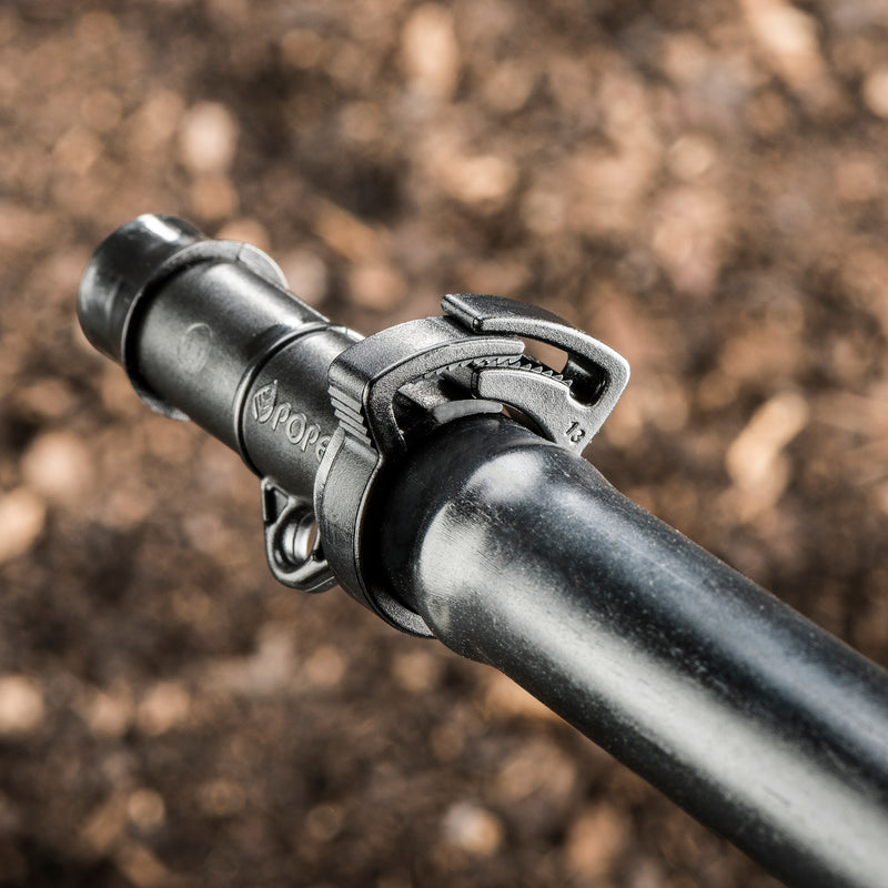 The Pope 13mm Locking Clamp is designed to securely fasten poly fittings to 13mm poly pipe and Drip Eze®. Its negative rake teeth ensure a strong, reliable grip, while the clamp can be easily tightened using standard pliers.