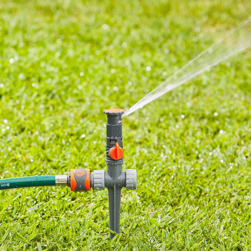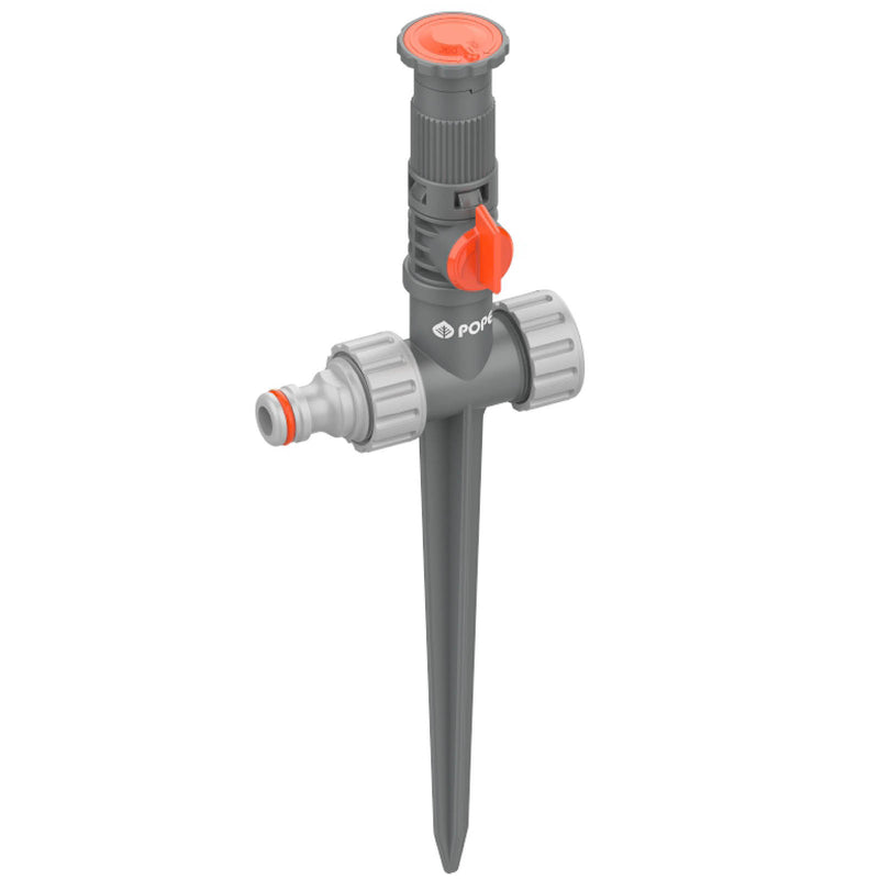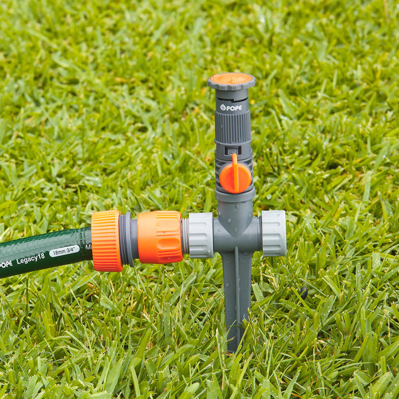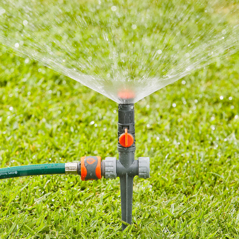 The Pope Vari-Arc Sprinkler on Spike is a versatile and efficient solution for targeted garden watering, offering an adjustable arc from 0° to 360° to cover exactly the areas you need. With a five meter radius throw, it features a convenient flow control dial on the sprinkler head for adjusting water distance and turning the sprinkler on or off.
