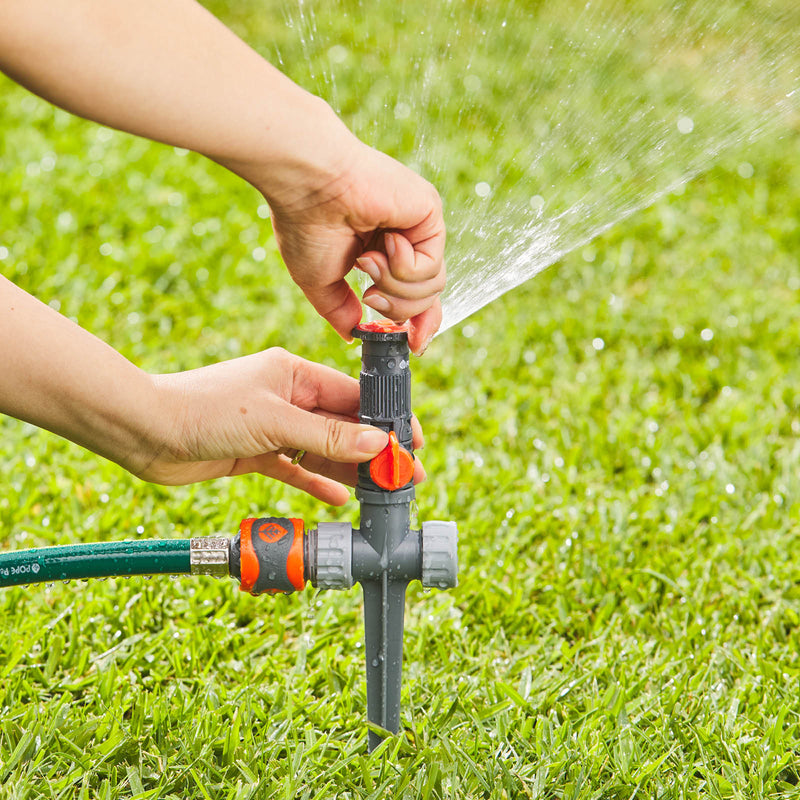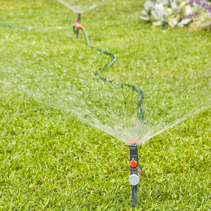 The integrated flow-through spike allows multiple sprinklers to be connected in a daisy chain, making it easy to water larger or uniquely shaped garden spaces with precision and control.