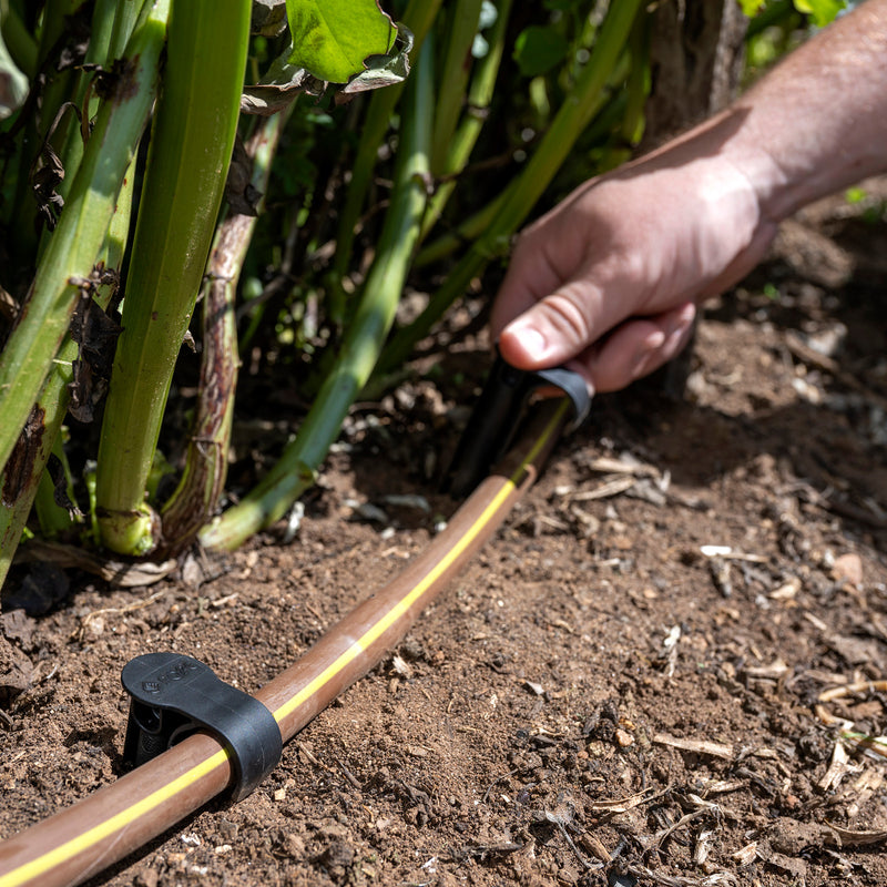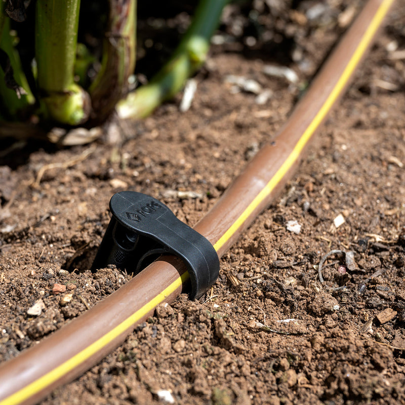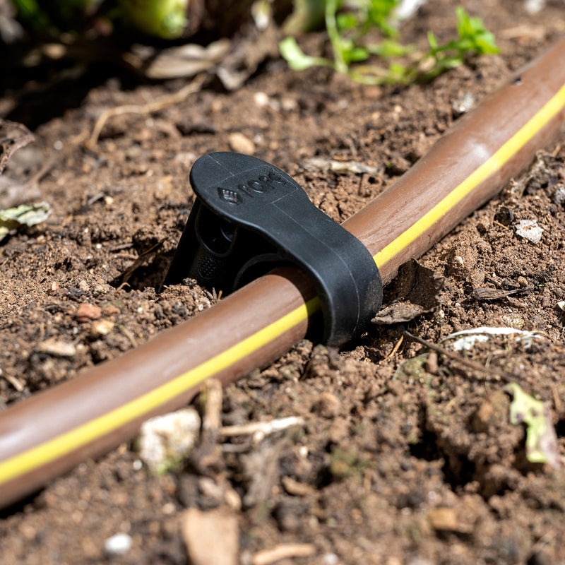The Pope Universal Hold Down Stake securely holds 13mm or 19mm poly tubing in place and prevents tube from lifting and moving. The wide top makes hammering into place straightforward and the specially designed shape makes insertion into the soil easier.